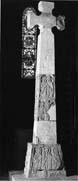 The unusual rope-bound crucifixion below could be that of Christ or St Andrew, both of which have been suggested. If the crucifixion were that of Christ, the haloed figures would then depict Mary on the right and John on the left, and below a figure possibly of the lance-bearer, which must originally have been balanced by a similar figure on the lower right (see no. 2, p. 40). Kendrick (1938, 142) suggested that the rope-bound figure is of Syrian origin. Coatsworth (1979, 123-7) considered the scene in the light of the robed Christ in western European and, more specifically, in Insular art. She concluded that all details save the arms bound behind the bar of the cross could fit with the iconography of the Crucifixion of Christ. The pose in which the arms are hidden, although usually that of the thieves who can accompany Christ's Crucifixion, she considers may have been dictated here by the space available on the shaft.