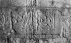 Both the style and design and the layout of the surviving decoration make it certain that these pieces come from the same large cover of mid-Kesteven type (see discussion in Chapter V and Fig. 9). Motif i is also found in this group on examples at Bassingham 1, Burton Pedwardine2 and Humberston; motif ii at Eagle, Hougham and Kirkby Laythorpe; motif vii at Bassingham 1 and Fulbeck. A symmetrical run of interlace centring on a bull's head (Fig. 11) is characteristic of the deep central side panels of this monument type, as at Creeton 7 and Hougham. The mirroring of the pattern therefore confirms that the exposed surfaces of the pieces are from either end of the cover's side. A further stone is therefore missing (probably of approximately similar dimension) with a central bull's head and symmetrical interlace. Even the motifs (i and ii) of the separate end panels differ only in their adjustment to the slightly different shape of panels at either end of a tapering space.