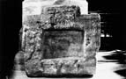 A (top): Decorated with a shallow plain roll moulding on the upper arris of the two narrow faces (C and E), that is badly damaged in the same way on both sides near the corners of face D. On the side with the oblong projection (B), the roll turns away from the arris and mirrors the projection leaving a return of a few centimetres. It has been removed to one side of the projection where the stone is recut as a simple chamfer. On the opposite side (D) there is no trace of the roll or a matching projection. Within the centre of face A is a neatly cut mortice measuring 43 cm (17 in) by 31 cm (12 in) and 10 cm (4 in) deep. Recut centrally within that is a smaller shallow socket, approximately 12 cm (5 in) by 11.5 cm (4.5 in), filled with lead.