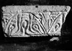 The original form of this piece is uncertain: it could have been part of a frieze or cornice, or even (if the smooth upper face were vertical) part of a door jamb. Its date and affiliations are also uncertain. In this region the long pointed leaves and leaf flowers might be considered reminiscent of Keynsham (see Ills. 295, 298, 302), but the prominent boss-like feature is unique in Anglo-Saxon sculpture. It may be an Anglo-Saxon piece copying Roman ornament, or indeed may be of Roman date (pers. comm. David Stocker). In which case it is somewhat reminiscent of the worn cornice from Bath (84) (Blagg 2002, pl. LXXIX), or the more legible ornament on the chamfered cornice block from the legionary baths at Wroxeter (117) (ibid., pl. LXVI).
