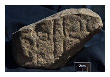 new find from HartlepoolAn exciting recent find from Hart on Teeside, has been made by AAG Archaeology. The excavators suggest this name stone fragment shares similarities with other mid-7th to mid-8th century examples from Hartlepool. Although damaged, an inscription can partly be made out - further research is underway. The fragment measures 265mm wide by 213mm long and is 76mm thick.